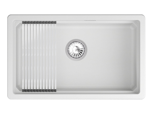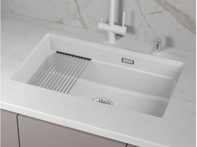 Врезная мойка Гранула 7303 станет незаменимым помощником на современной кухне. Вытянутая прямоугольная форма позволяет легко справляться с большим объемом посуды. Плотный композитный кварц обеспечивает защиту от мелких повреждений и долгую комфортную эксплуатацию. Ролл-мат и дозатор добавляют удобства и стильных акцентов.