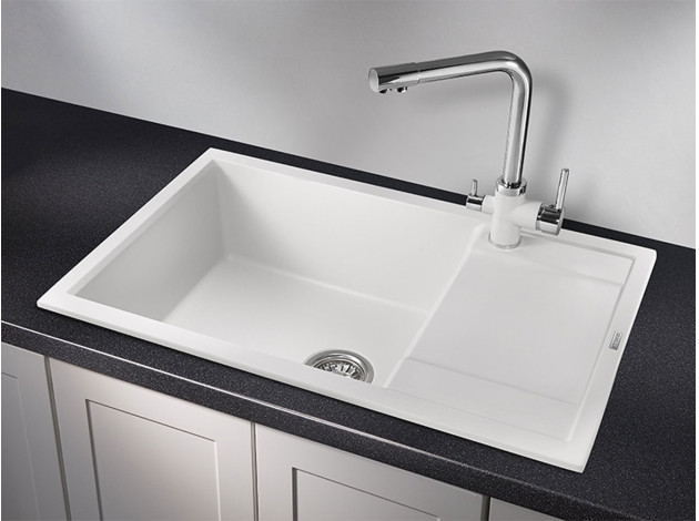 Врезная мойка GR-7805 порадует долговечностью, удобной эксплуатацией и эстетичным дизайном. Литая чаша из кварца приятна на ощупь и устойчива к повреждениям. Стенки хорошо поглощают звуки воды, поэтому пользоваться аксессуаром очень комфортно. Вместительная и глубокая чаша позволяет без труда помыть довольно объемную посуду.