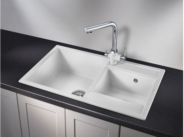 Врезная мойка GR-8201 станет практичным и долговечным приобретением для кухни. Стильный дизайн отлично сочетается с современными гарнитурами, а устойчивое к повреждениям покрытие не требует особого ухода. Две чаши разного размера позволяют с комфортом мыть посуду, овощи или фрукты, а также с легкостью справляться с другими ежедневными хлопотами.