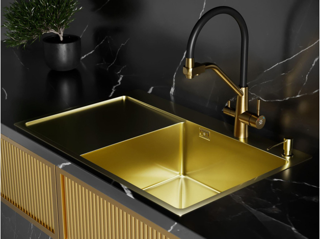 Врезная мойка с дозатором MRK-7851 Золотой / Металлик Правая