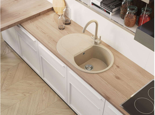 Врезная мойка Атол 760 станет стильным дополнением кухонного гарнитура. Поверхность устойчива к повреждениям и непритязательна в уходе, не уступает по прочности натуральному камню, а также имеет привлекательную текстуру. Мойка с крылом создает комфортное пространство для мытья посуды и хранения моющих средств.
