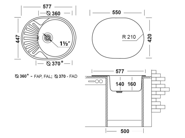 Врезная мойка Фаворит 577х447 матовая — оригинальный выбор для комплектации кухонного гарнитура в несколько нестандартном решении. Утонченная овальная форма в дополнении с изящным рельефным крылом, не имеющим перелива, превращают этот обыденный аксессуар в креативную модель.