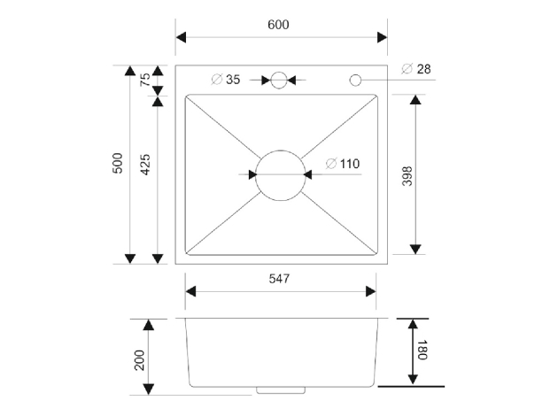 - Габариты чаши: 54,7 х 39,8 х 18 см.