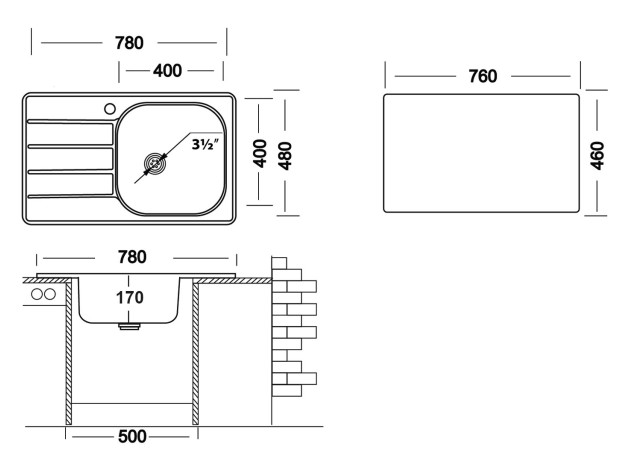 Врезная мойка Гранд 780x480 матовая