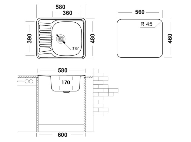 Врезная мойка Комфорт 580x480 матовая выполнена из нержавеющей стали, что делает уход за ней максимально простым. Материал обладает устойчивостью к коррозии, механическим повреждениям и бытовой химии. Несмотря на небольшой размер, мойка имеет довольно глубокую чашу, в которой комфортно мыть даже крупногабаритную посуду.