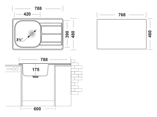 Врезная мойка Спектр 788x480 матовая