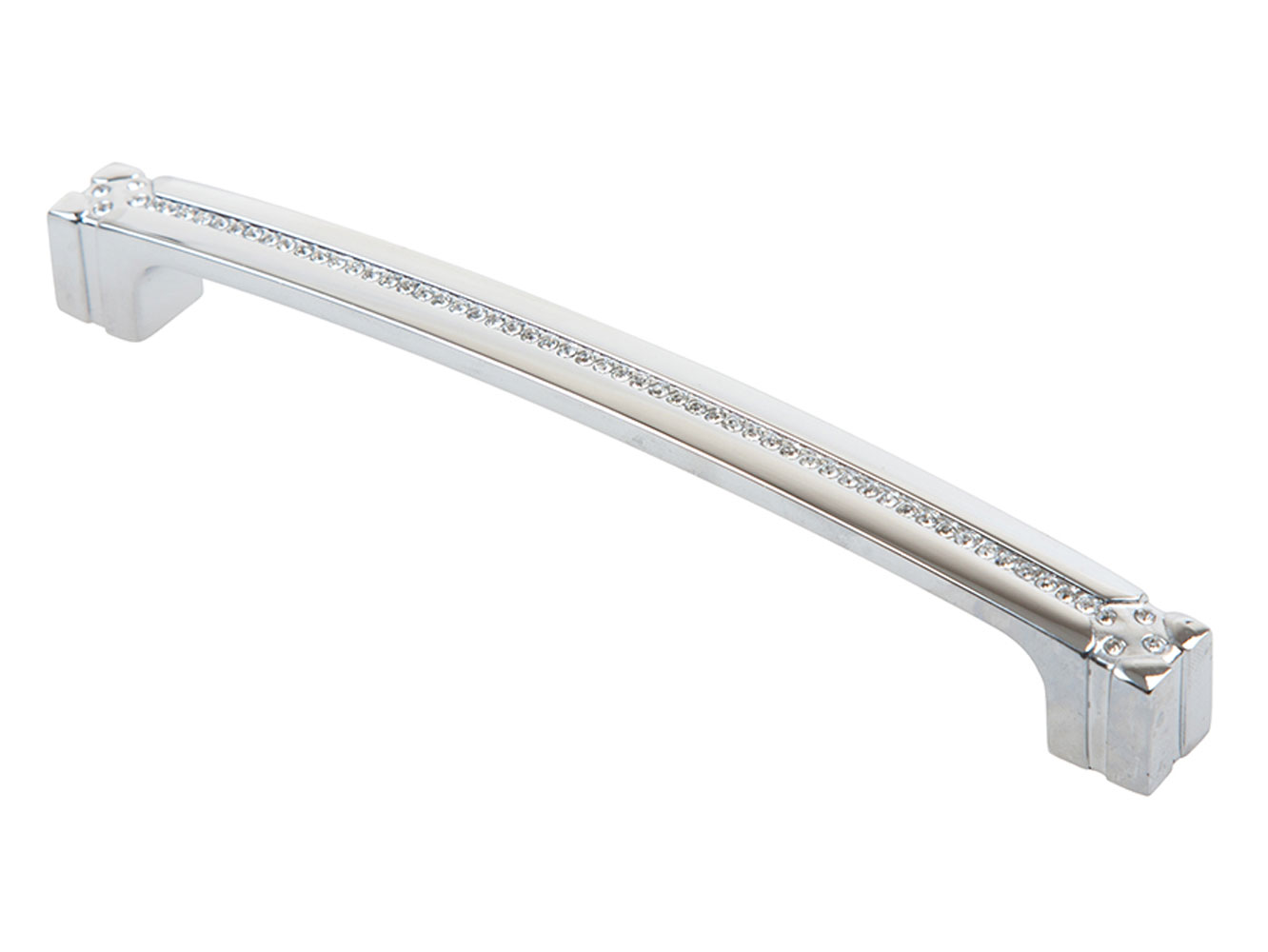 • Ручка-скоба CRL18 — сочетание визуальной гармонии и изящества. Эстетичная фурнитура с кристаллами украсит фасады в классическом и современном стиле. Слегка изогнутая форма, как сверкающий мостик, усыпанный россыпью звезд, создает яркие блики. Цинковый сплав с гальваническим покрытием обеспечивает прочность и долговечность.