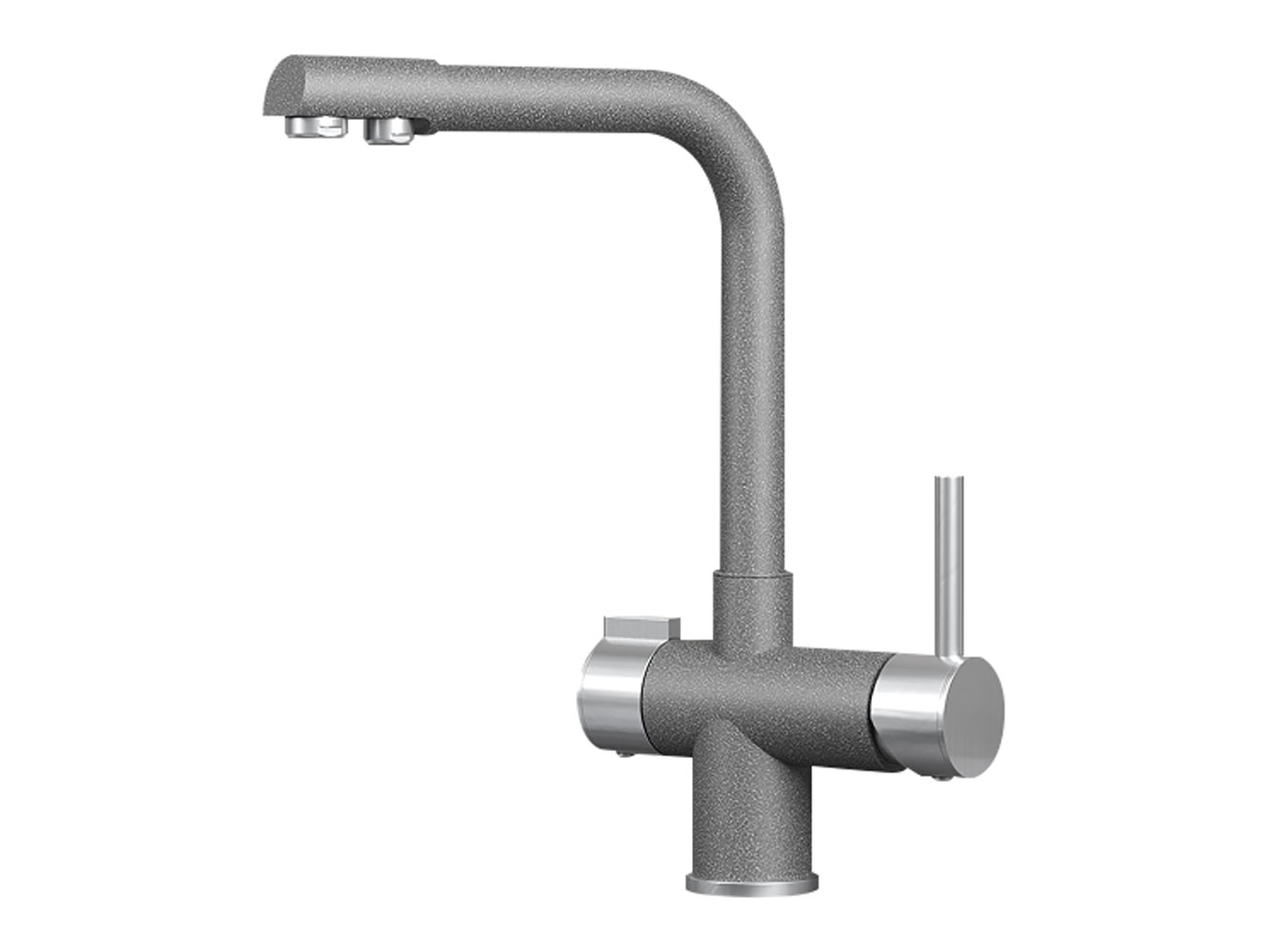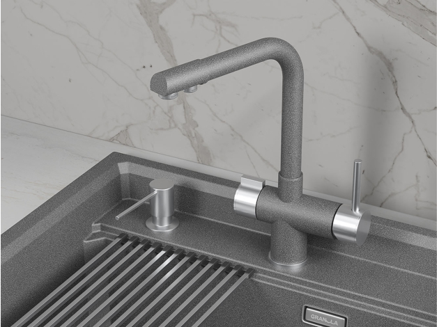 • Смеситель GR-5008 — идеальное сочетание стиля и функциональности. Надежный материал отличается прочностью и устойчивостью к коррозии. Рычажное управление обеспечивает легкость в регулировке напора и температуры воды. Поворотный излив добавляет удобства во время мытья крупногабаритной посуды. Матовое покрытие придает аксессуару современный вид и облегчает уход за поверхностью.