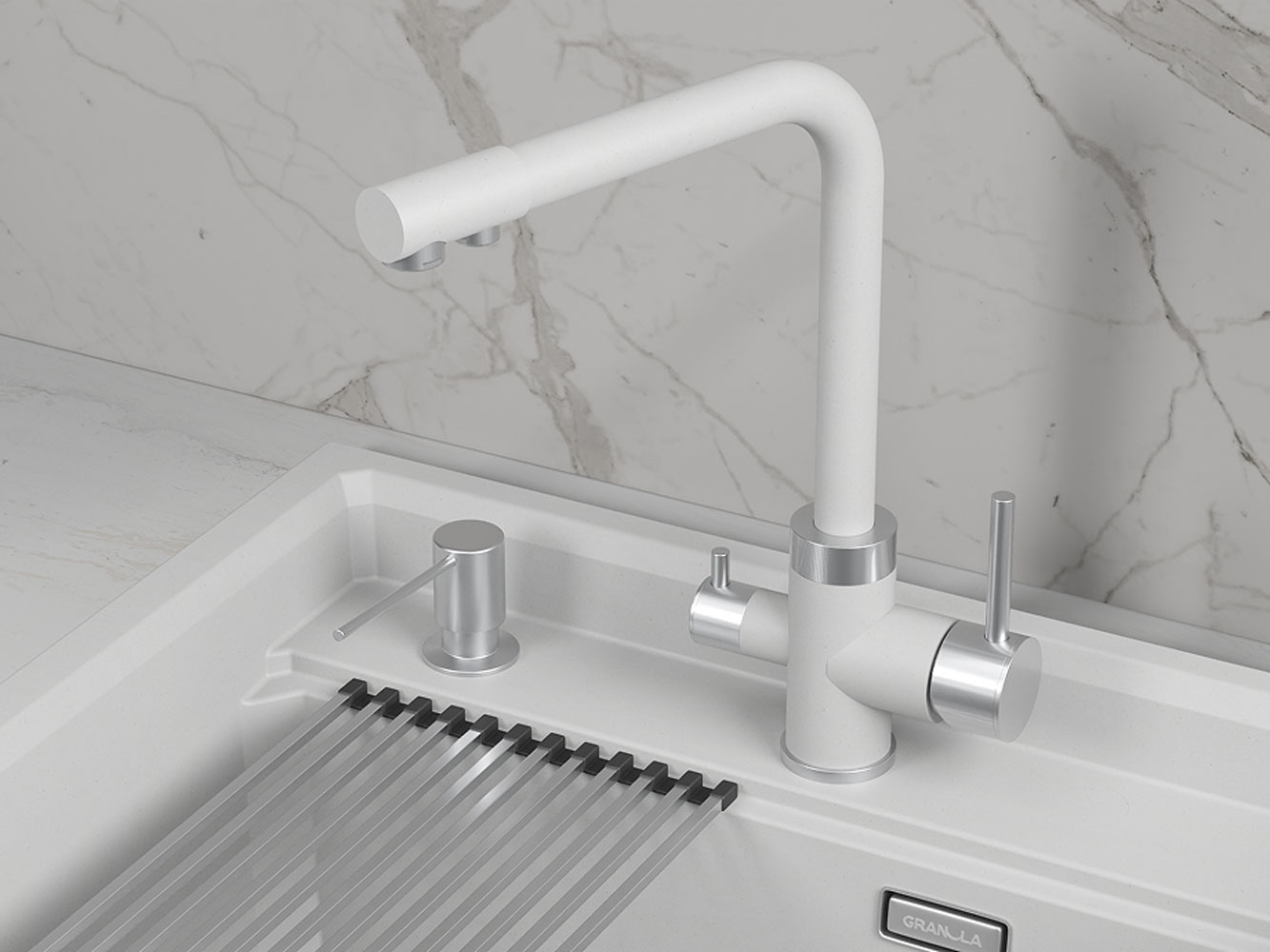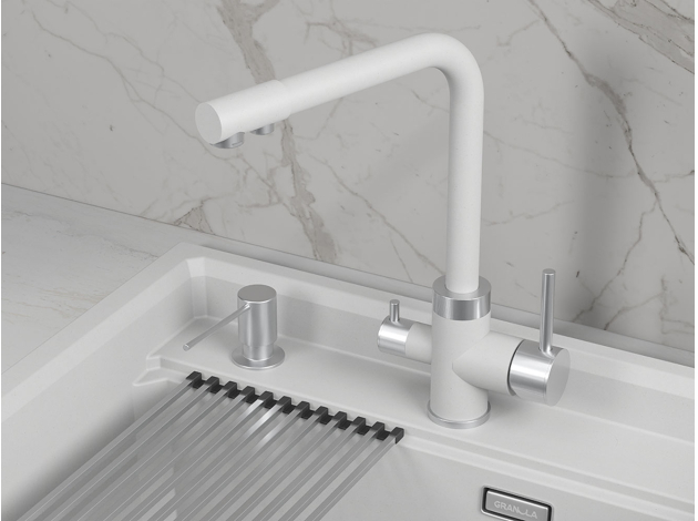 Смеситель GR-5015 станет идеальным дополнением современной кухни. Аксессуар сочетает удобство и стильный дизайн. Нержавеющая сталь обеспечивает долговечность и защиту от коррозии. Управление с помощью рычага позволяет легко регулировать напор и температуру воды. Поворотный излив добавляет элегантности и подходит под разные стили интерьера.