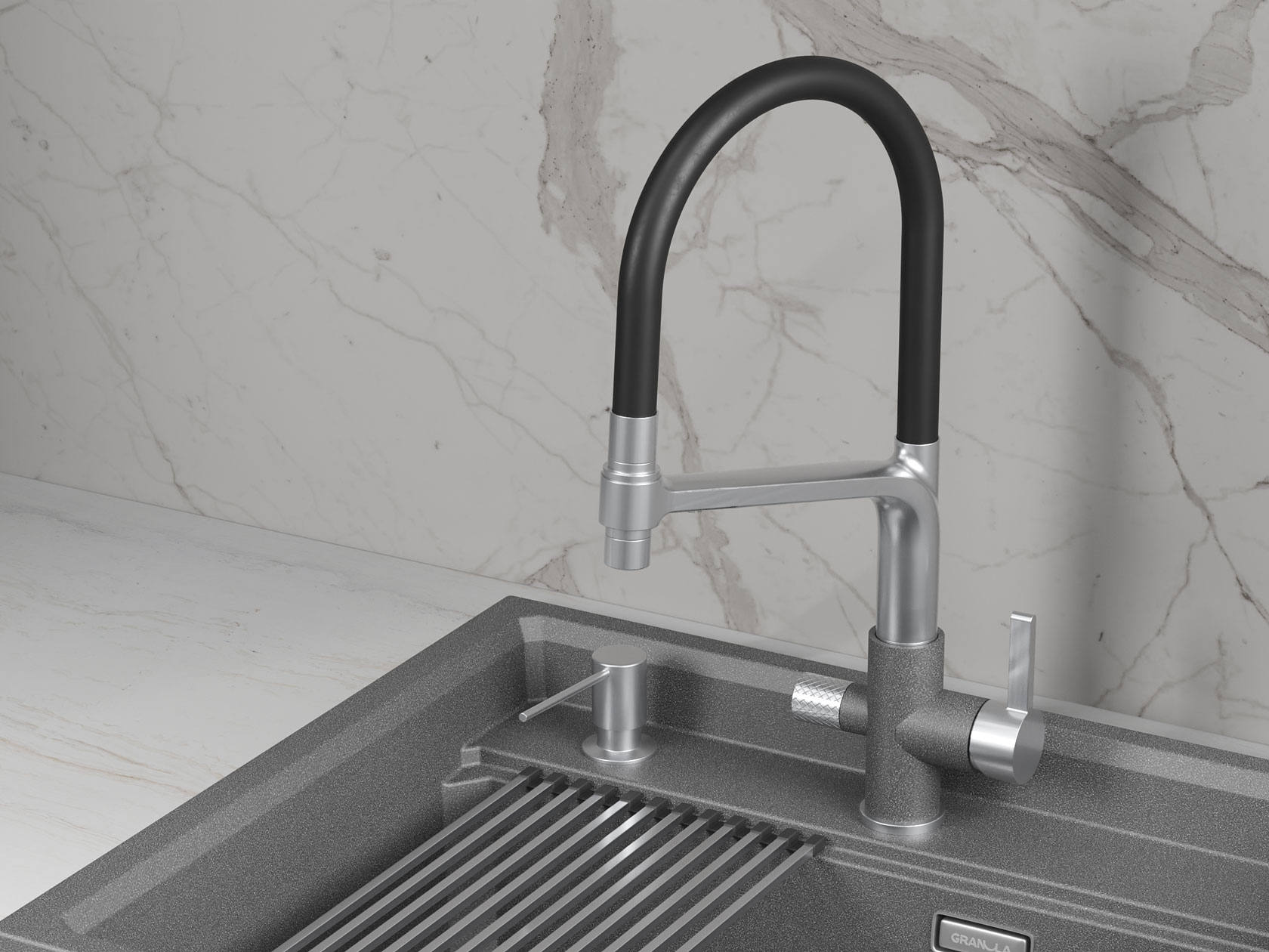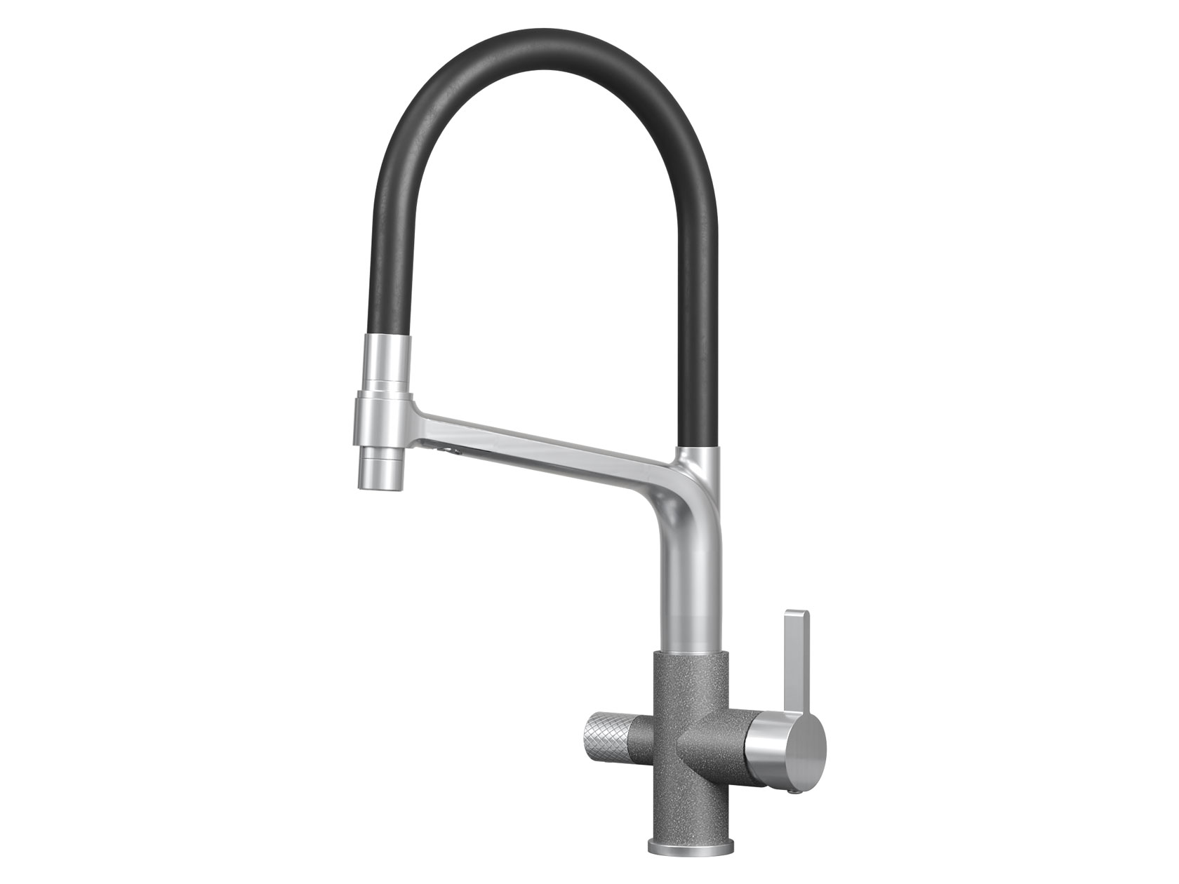 • Смеситель GR-5083 станет незаменимым дополнением современной кухни. Гибкий силиконовый излив позволяет направлять струю в любую точку мойки. Рычажное управление гарантирует плавную регулировку температуры и напора. Два режима подачи — струя и душ — легко переключаются с помощью поворота лейки. Аксессуар оснащен встроенным каналом для подключения к фильтру, чтобы обеспечить чистую питьевую воду. Керамический картридж гарантирует долгий срок службы.