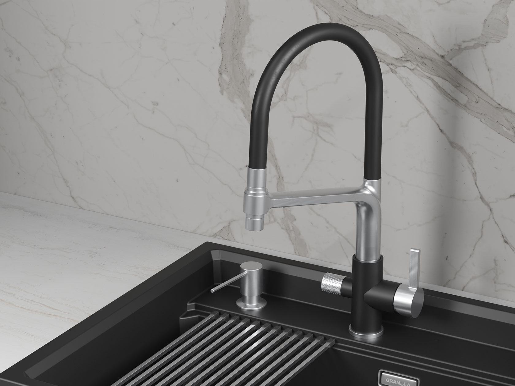 • Смеситель GR-5083 станет незаменимым дополнением современной кухни. Гибкий силиконовый излив позволяет направлять струю в любую точку мойки. Рычажное управление гарантирует плавную регулировку температуры и напора. Два режима подачи — струя и душ — легко переключаются с помощью поворота лейки. Аксессуар оснащен встроенным каналом для подключения к фильтру, чтобы обеспечить чистую питьевую воду. Керамический картридж гарантирует долгий срок службы.