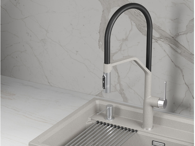 • Смеситель GR-9012 создан для тех, кто ценит удобство и функциональность. Корпус из нержавеющей стали обеспечивает долговечность и устойчивость к коррозии. Гибкий силиконовый излив на магните позволяет легко направлять струю в нужное место. Возможность подключения к фильтру для питьевой воды делает аксессуар идеальным выбором для заботы о здоровье и комфорте в доме.
