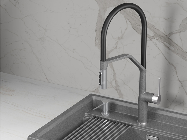 • Смеситель GR-9012 создан для тех, кто ценит удобство и функциональность. Корпус из нержавеющей стали обеспечивает долговечность и устойчивость к коррозии. Гибкий силиконовый излив на магните позволяет легко направлять струю в нужное место. Возможность подключения к фильтру для питьевой воды делает аксессуар идеальным выбором для заботы о здоровье и комфорте в доме.