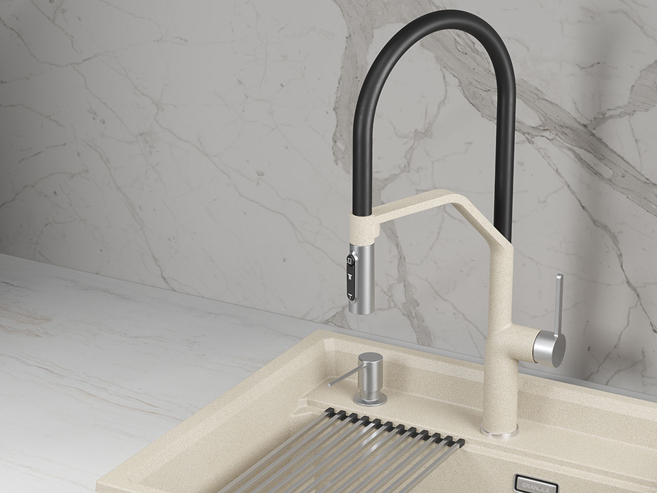 • Смеситель GR-9012 создан для тех, кто ценит удобство и функциональность. Корпус из нержавеющей стали обеспечивает долговечность и устойчивость к коррозии. Гибкий силиконовый излив на магните позволяет легко направлять струю в нужное место. Возможность подключения к фильтру для питьевой воды делает аксессуар идеальным выбором для заботы о здоровье и комфорте в доме.