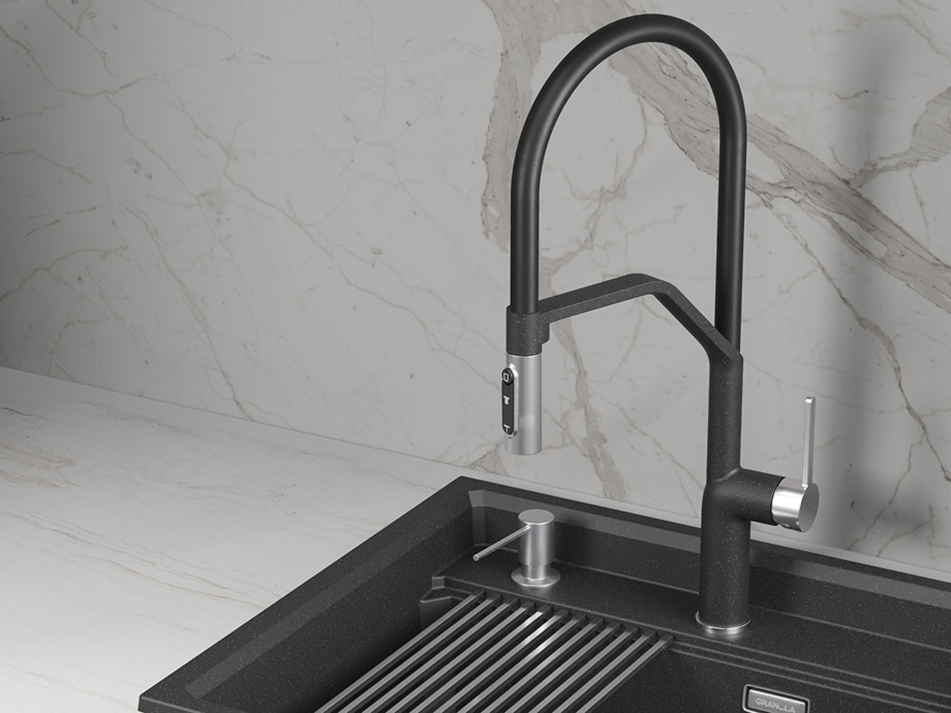 Смеситель GR-9012 создан для тех, кто ценит удобство и функциональность. Корпус из нержавеющей стали обеспечивает долговечность и устойчивость к коррозии. Гибкий силиконовый излив на магните позволяет легко направлять струю в нужное место. Возможность подключения к фильтру для питьевой воды делает аксессуар идеальным выбором для заботы о здоровье и комфорте в доме.
