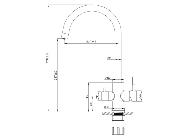 - Тип смесителя: двухрычажный, с подключением фильтра.