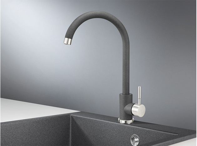 • Смеситель ST-4031 станет удачным приобретением для любой современной кухни. Модель с высоким изливом очень комфортна для мытья посуды разного размера. Регулировать температуру воды и скорость потока можно с помощью поворотного рычага.