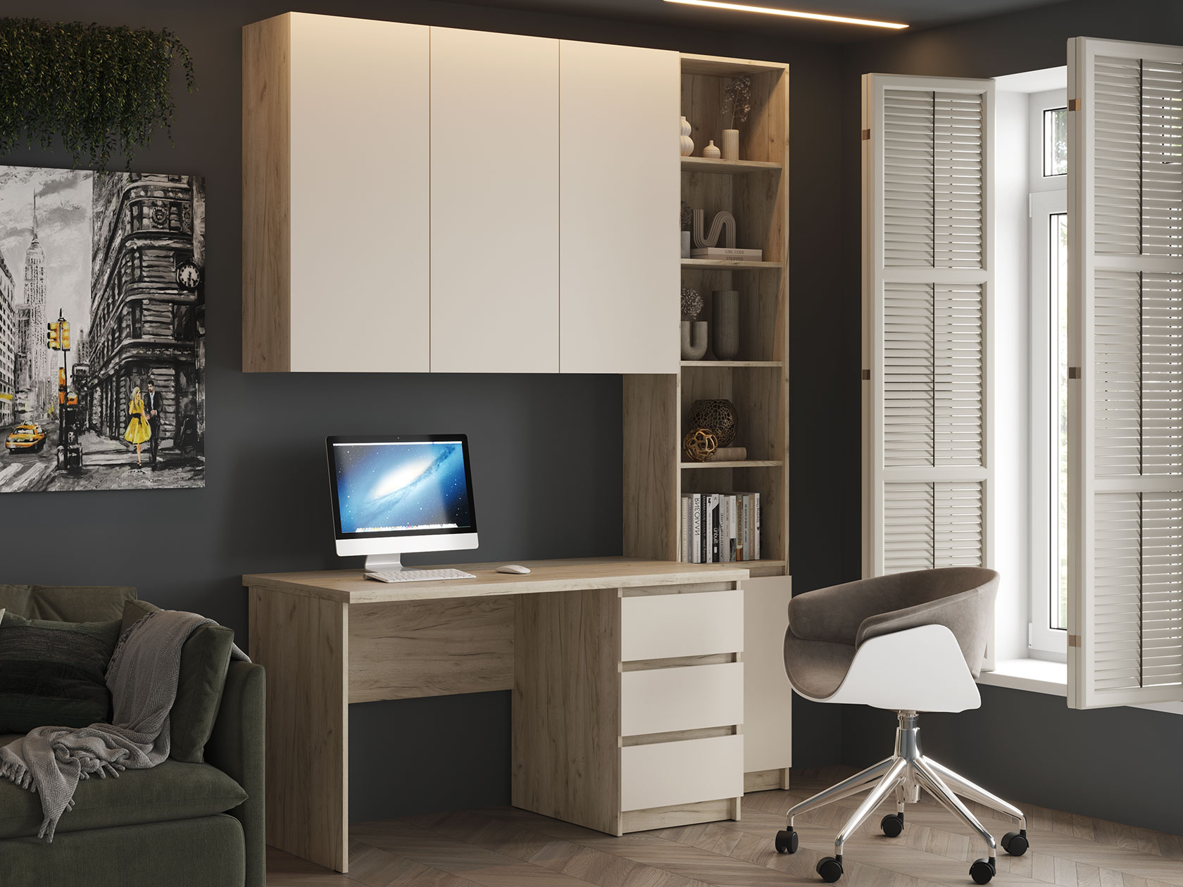 Комплект офисной мебели Бостон Дуб Крафт серый / Кашемир