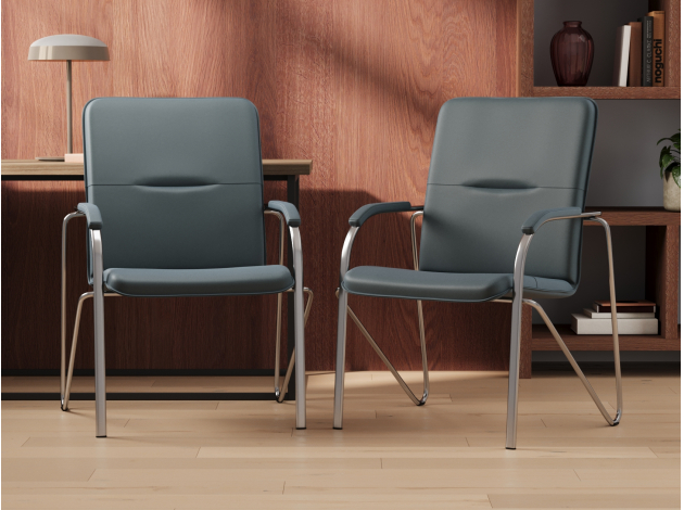 Офисный стул Самба М — практичное решение для рабочих пространств, переговорных и зон ожидания. Сиденье и спинка обиты простым в уходе, прочным и износостойким материалом. Хромированное покрытие ножек добавляет модели эстетическую привлекательность, а мягкие накладки на подлокотниках — дополнительный комфорт. Стул отлично подходит для интенсивного ежедневного использования.