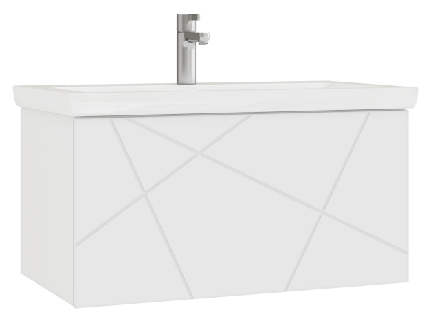 • Комплект мебели для ванной Геометрия станет практичным решением для небольшого пространства, где на счету каждый сантиметр. Компактная подвесная тумба оснащена вместительным выдвижным ящиком для хранения бытовых мелочей и косметики. Качественные материалы и фурнитура обеспечивают комфортную эксплуатацию. Матовые фасады с геометрическими линиями добавляют интерьеру динамики.