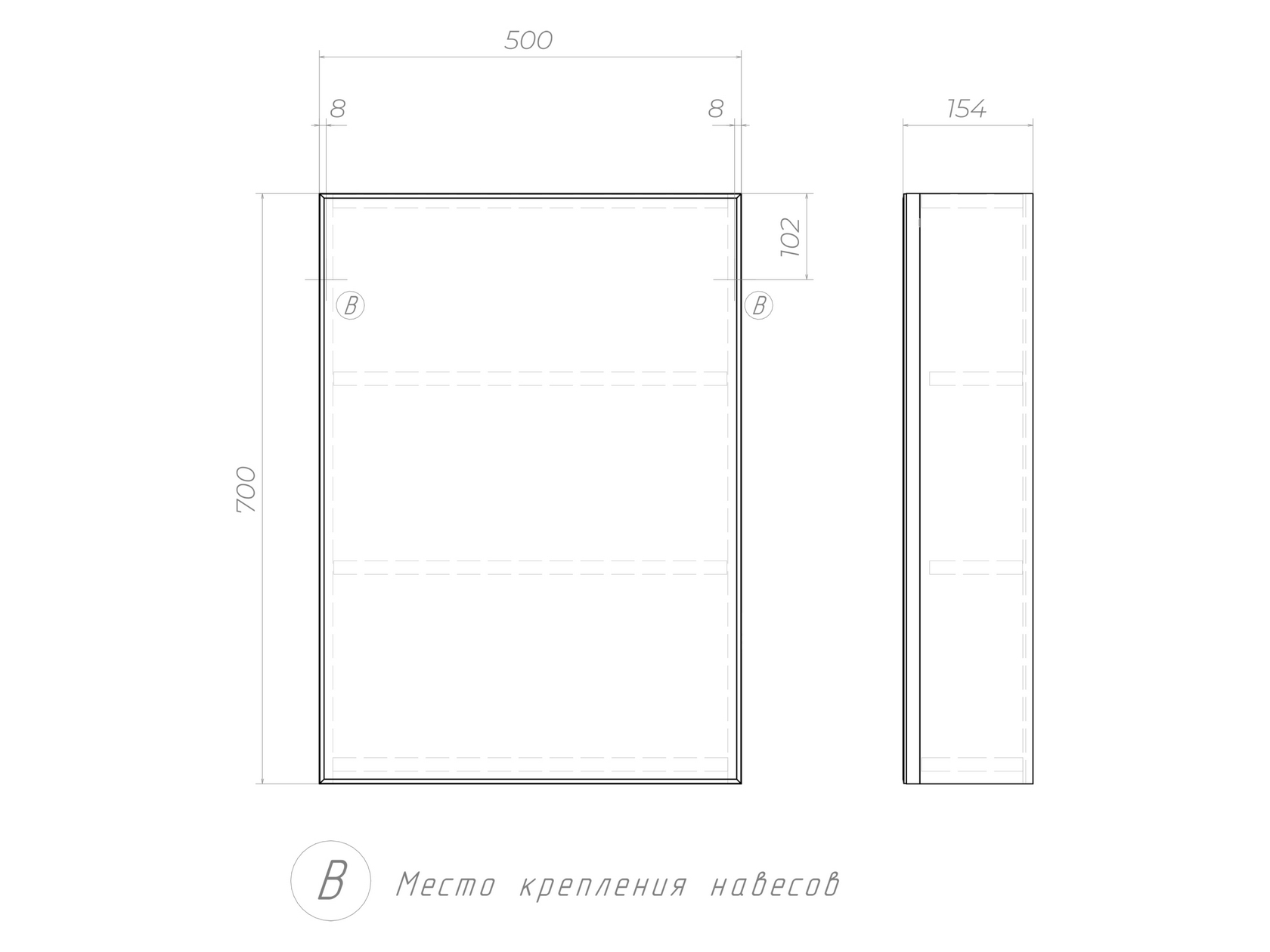 • Зеркальный шкаф: 70 х 50 х 15,4 см.