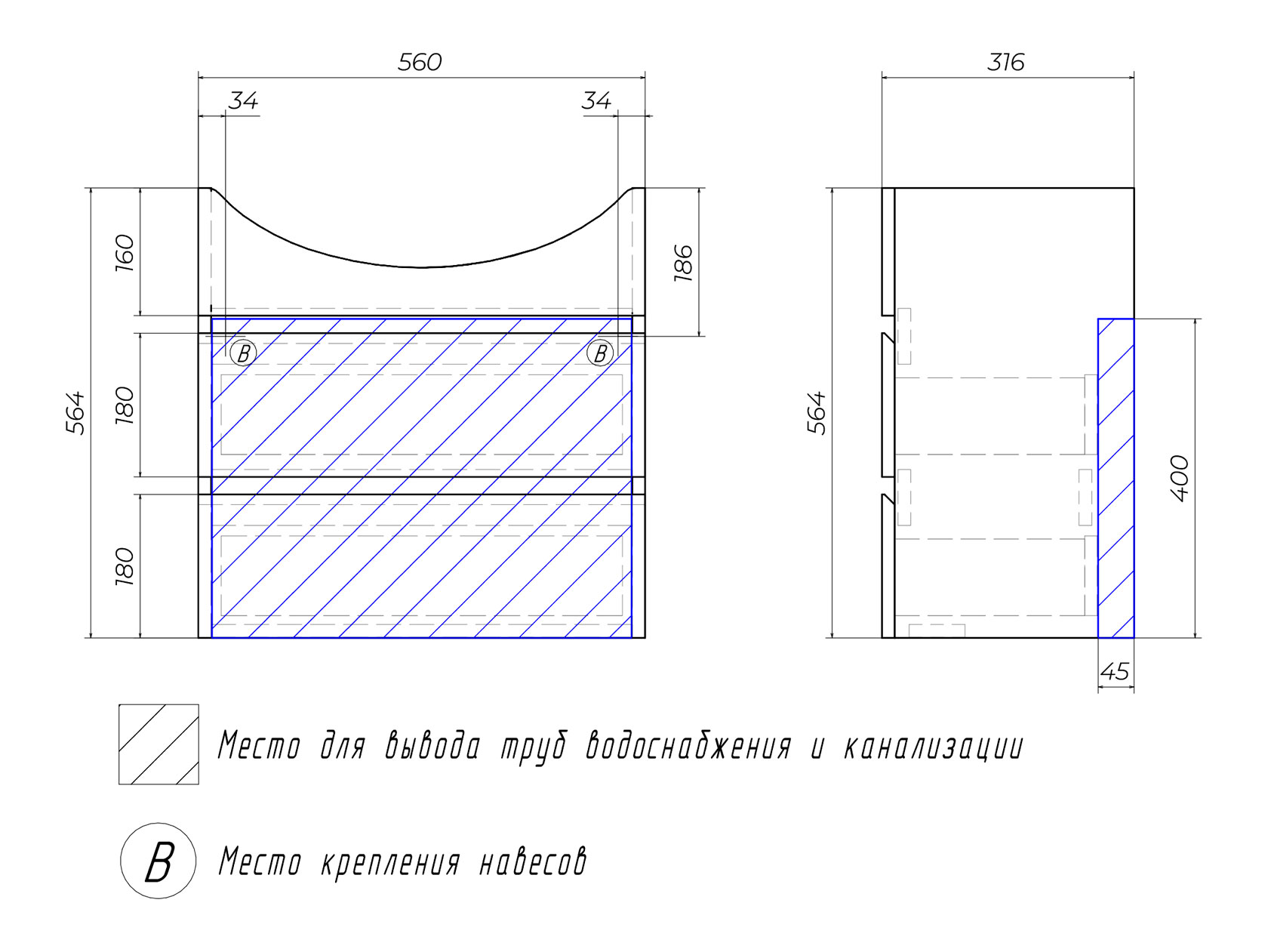 - Фурнитура для крепления к стене входит в комплект.