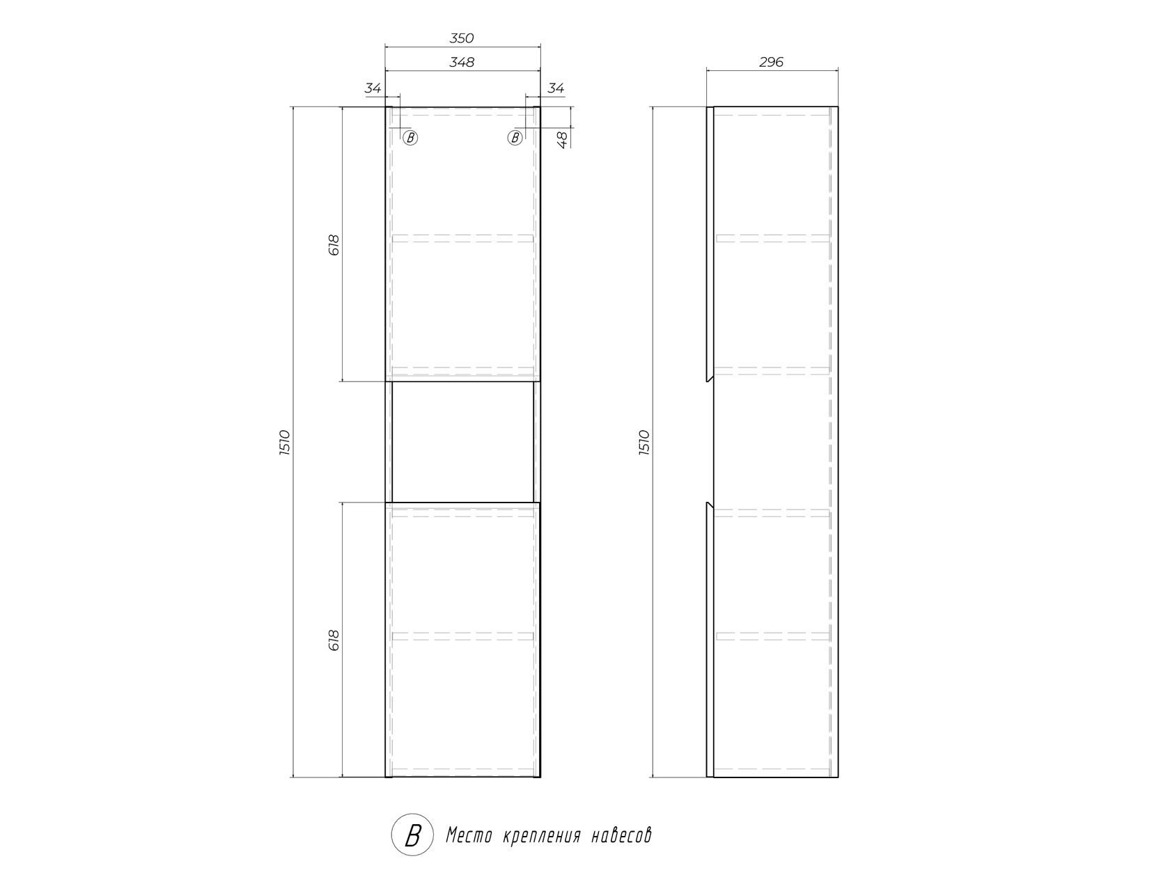 - Навесной пенал: 151 х 35 х 29,6 см.