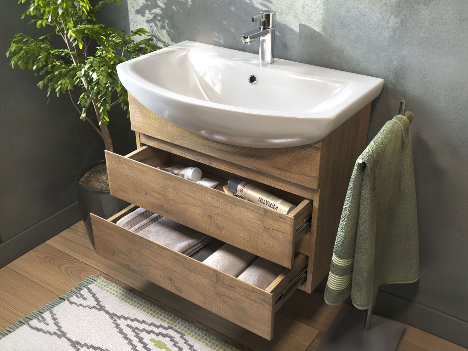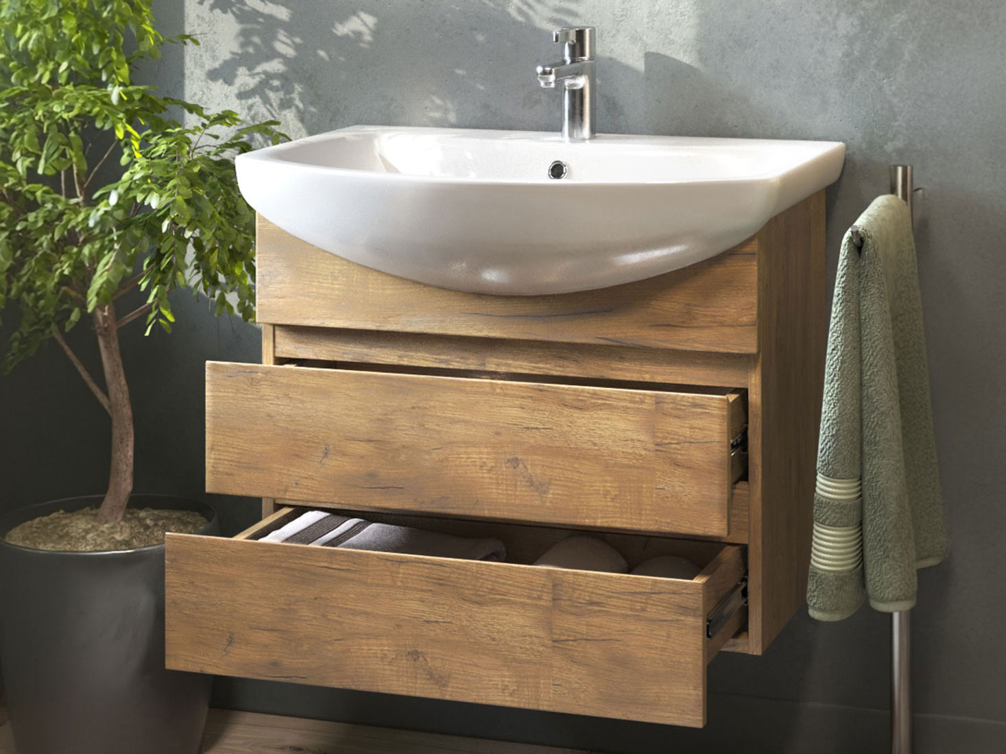 - Навесная тумба под раковину: 52,2 х 66 х 31,6 см.