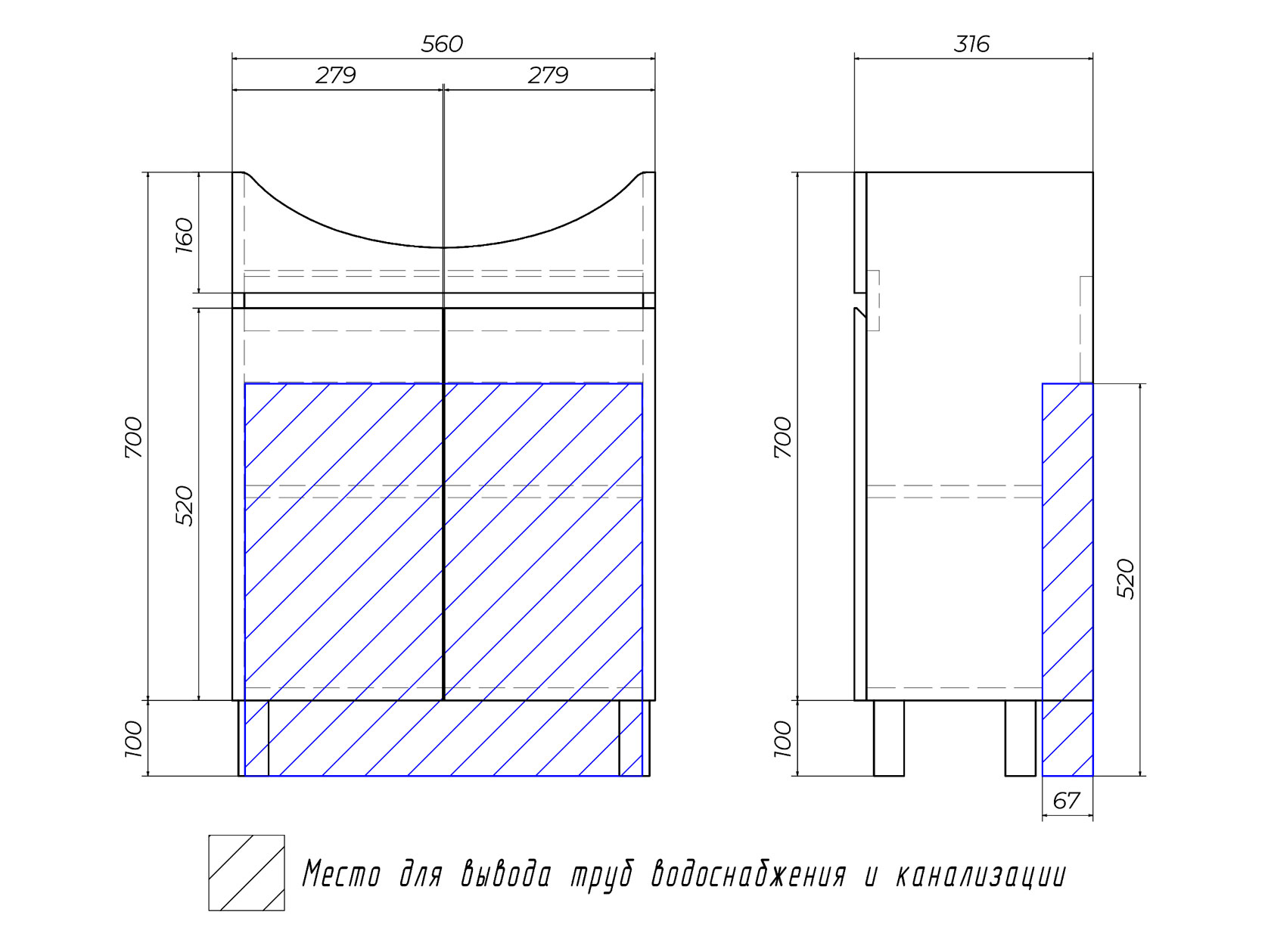 - Материал тумбы: влагостойкая ЛДСП 16 мм.