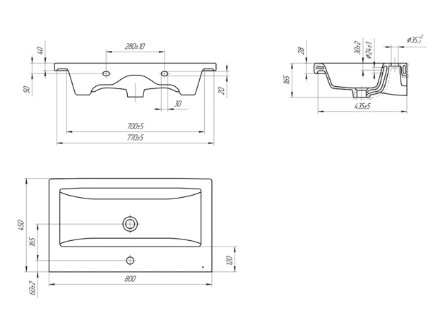 • Габариты (В × Ш × Г): 16.5 × 80 × 45 см