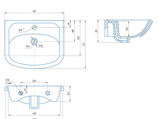 - Диаметр отверстия слива: 4,5 см.