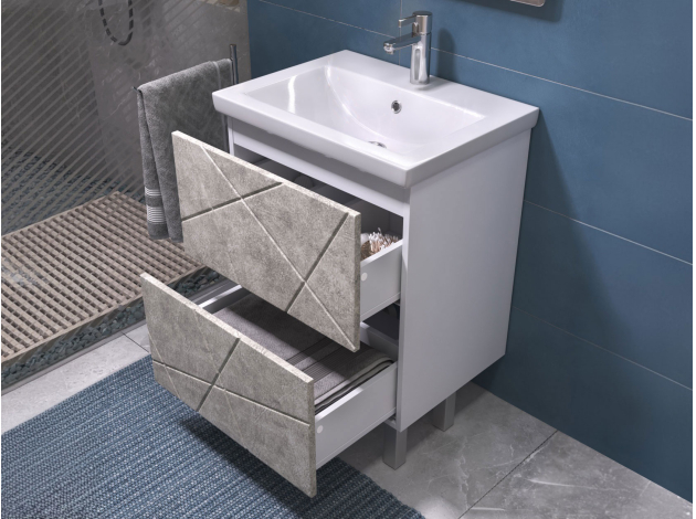 Напольная тумба под раковину Геометрия Бетон 60 см С раковиной