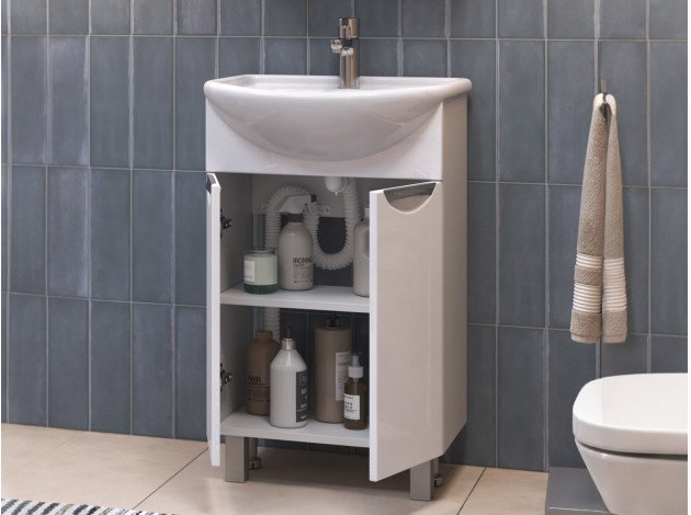 Тумба под раковину Каллао 2 двери Белый глянец 50 см С раковиной