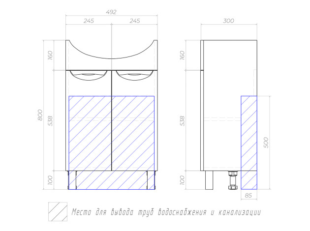• Диаметр отверстия слива и сифона для раковины 50 см: 4,5 см.