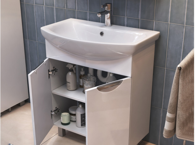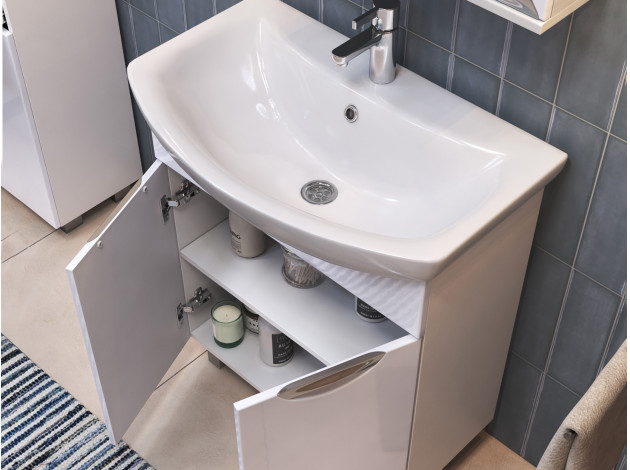 Тумба под раковину Каллао 2 двери Белый глянец 60 см Без раковины