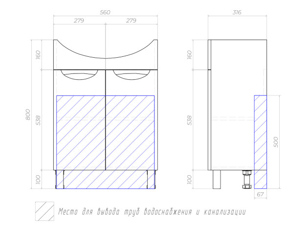 • Диаметр отверстия слива и сифона для раковин 60 и 70 см: 4,6 см.