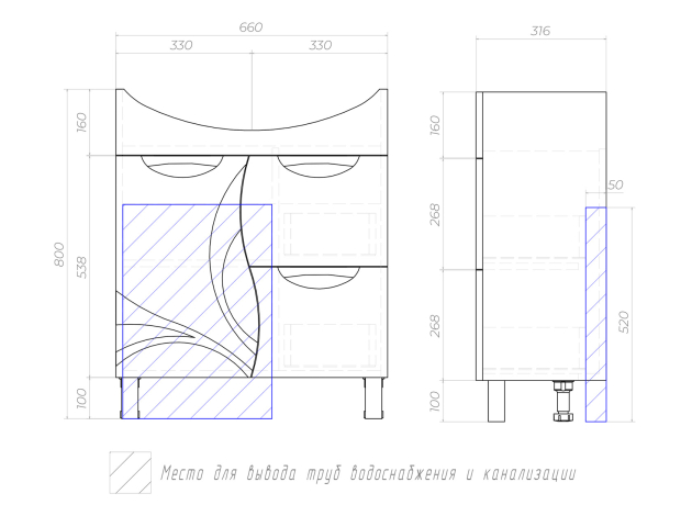 - Напольная тумба: 80 х 66 х 31,6 см.