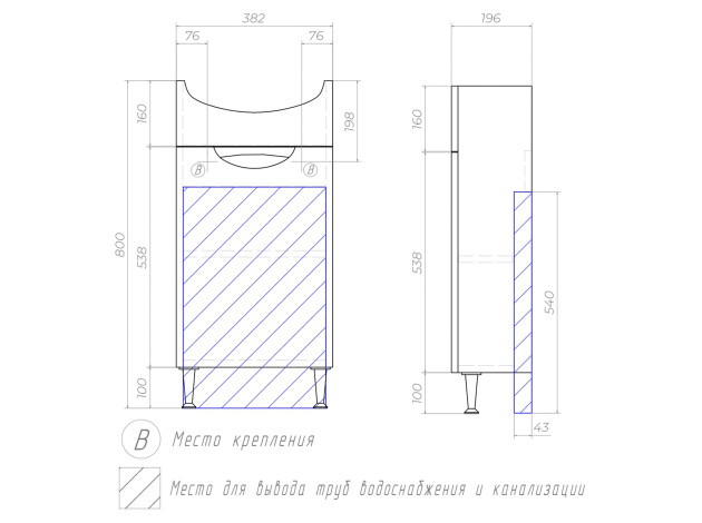 • Комплектация: Без раковины