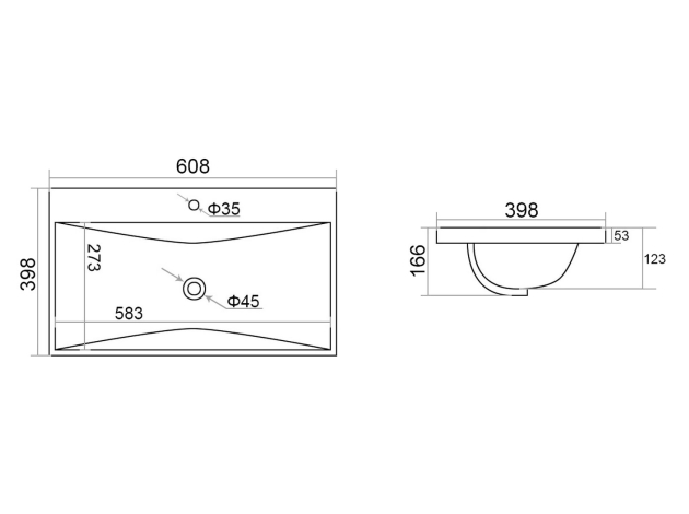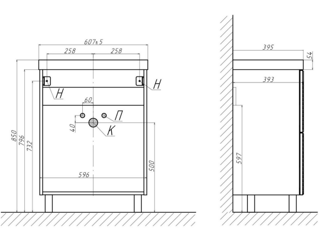 • для тумбы 60 см: 16,6 х 60,8 х 39,8 см;