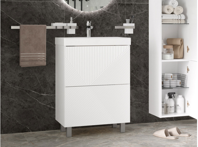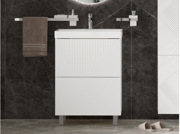 Напольная тумба под раковину Эджи Белый глянец 60 см С раковиной