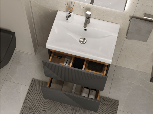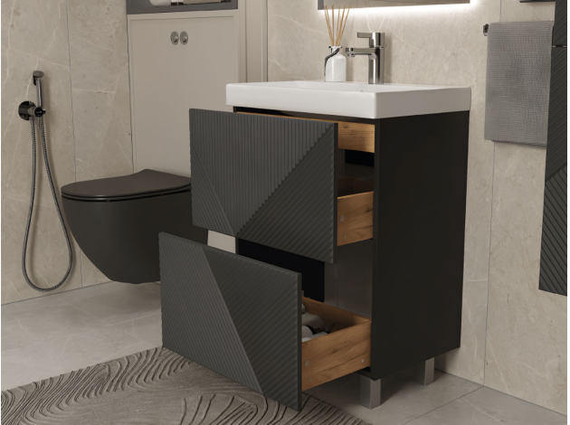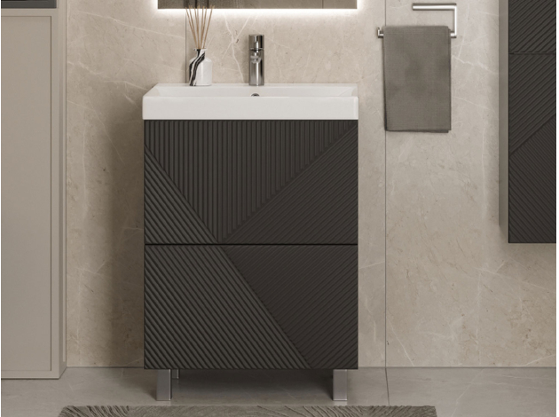 Напольная тумба под раковину Эджи Графит 60 см С раковиной