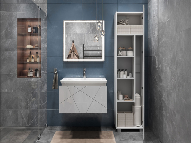 Навесная тумба под раковину Геометрия Белый 70 см С раковиной