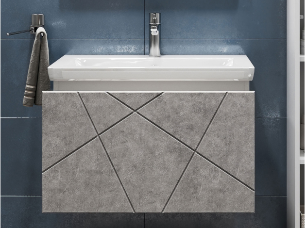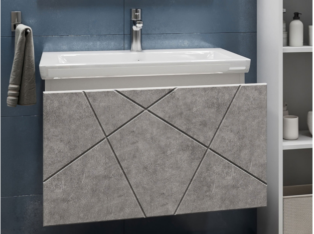 Навесная тумба под раковину Геометрия Бетон 70 см С раковиной