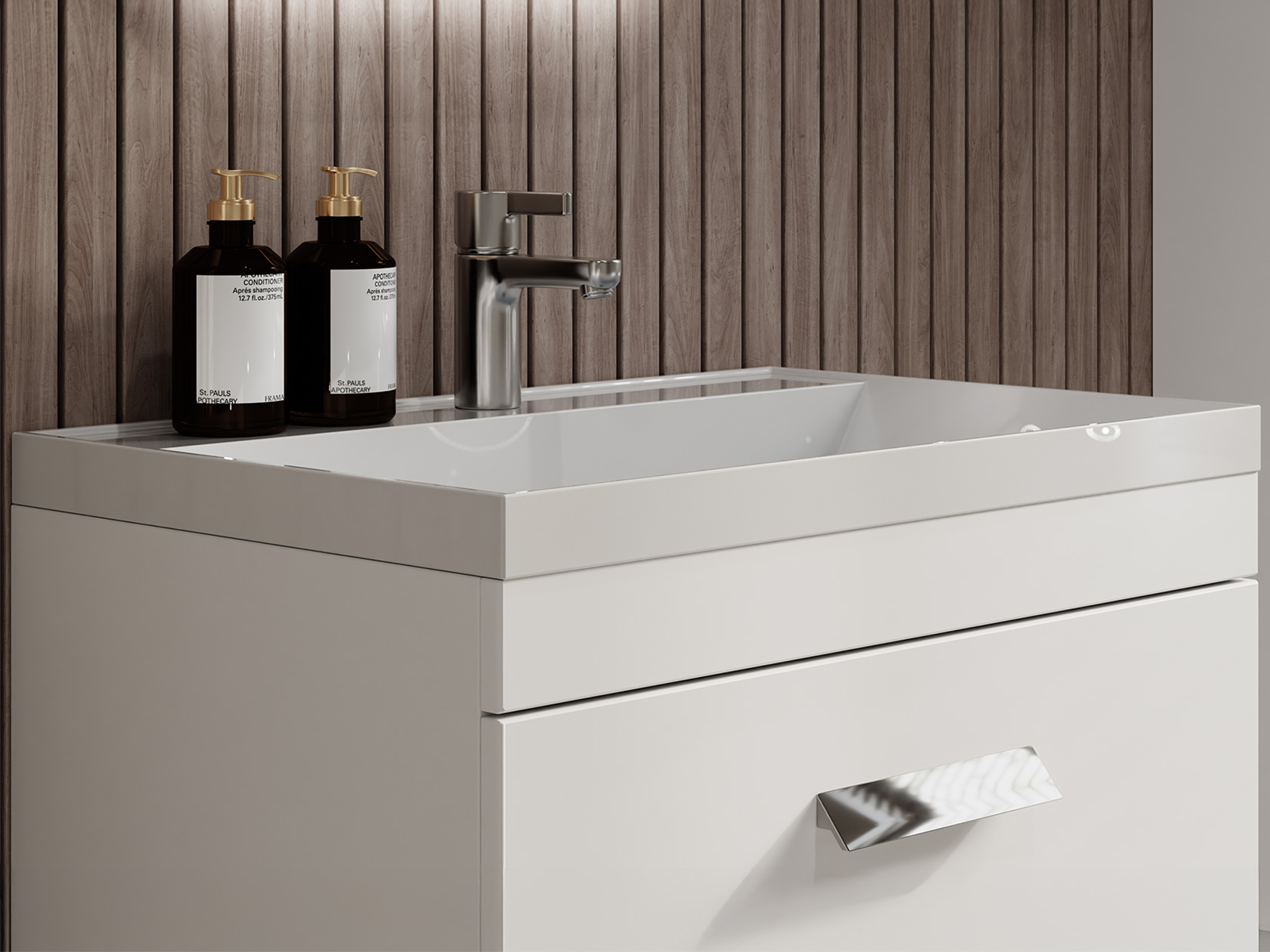 • Тумба с раковиной Орландо — идеальное сочетание стиля и функциональности. Просторные выдвижные ящики обеспечат хранение полотенец, косметики и других принадлежностей. В дизайне сделан акцент на лаконичность и прямые линии, что придает модели современный вид. Устойчивые ножки добавляют мебели устойчивости и облегчают уборку.