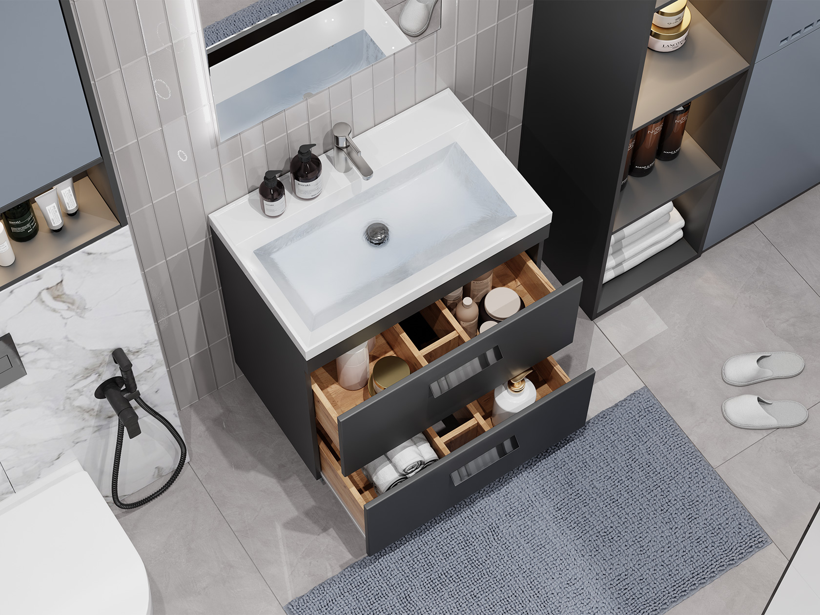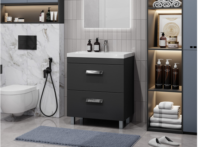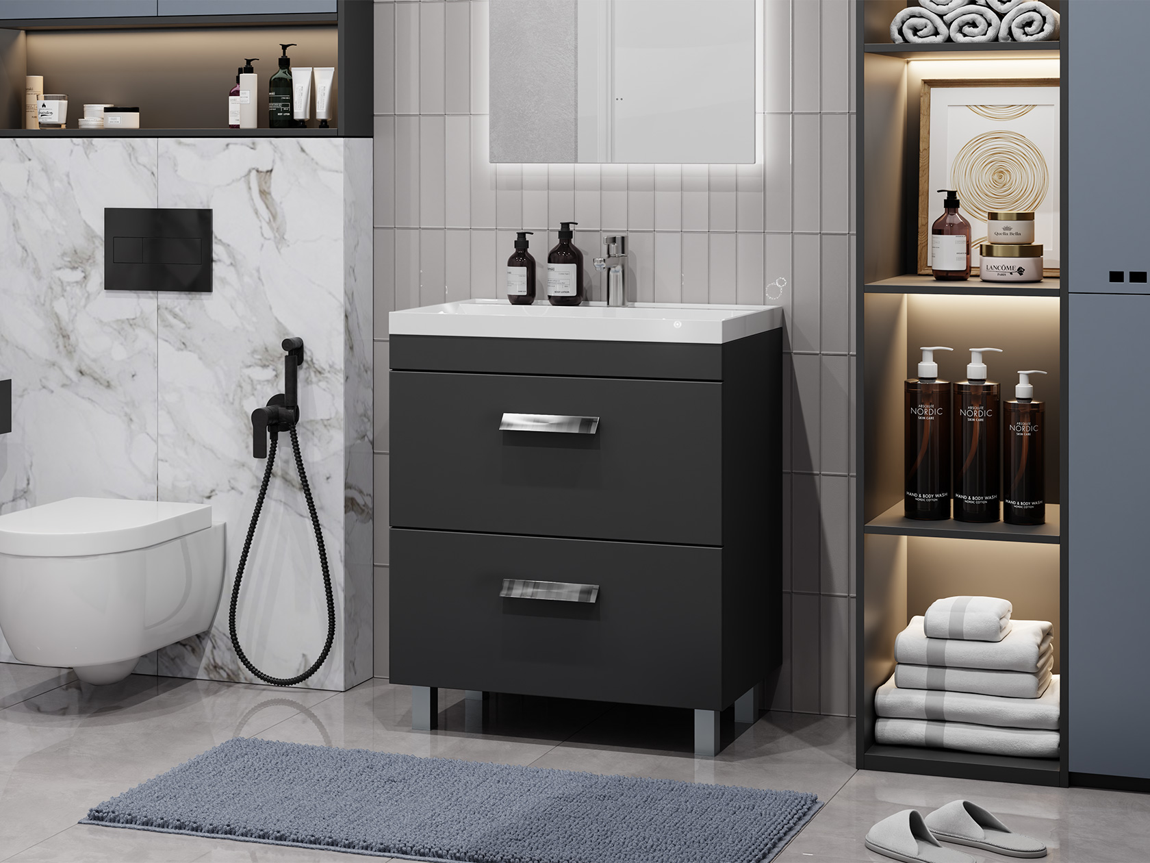 • Тумба с раковиной Орландо — идеальное сочетание стиля и функциональности. Просторные выдвижные ящики обеспечат хранение полотенец, косметики и других принадлежностей. В дизайне сделан акцент на лаконичность и прямые линии, что придает модели современный вид. Устойчивые ножки добавляют мебели устойчивости и облегчают уборку.