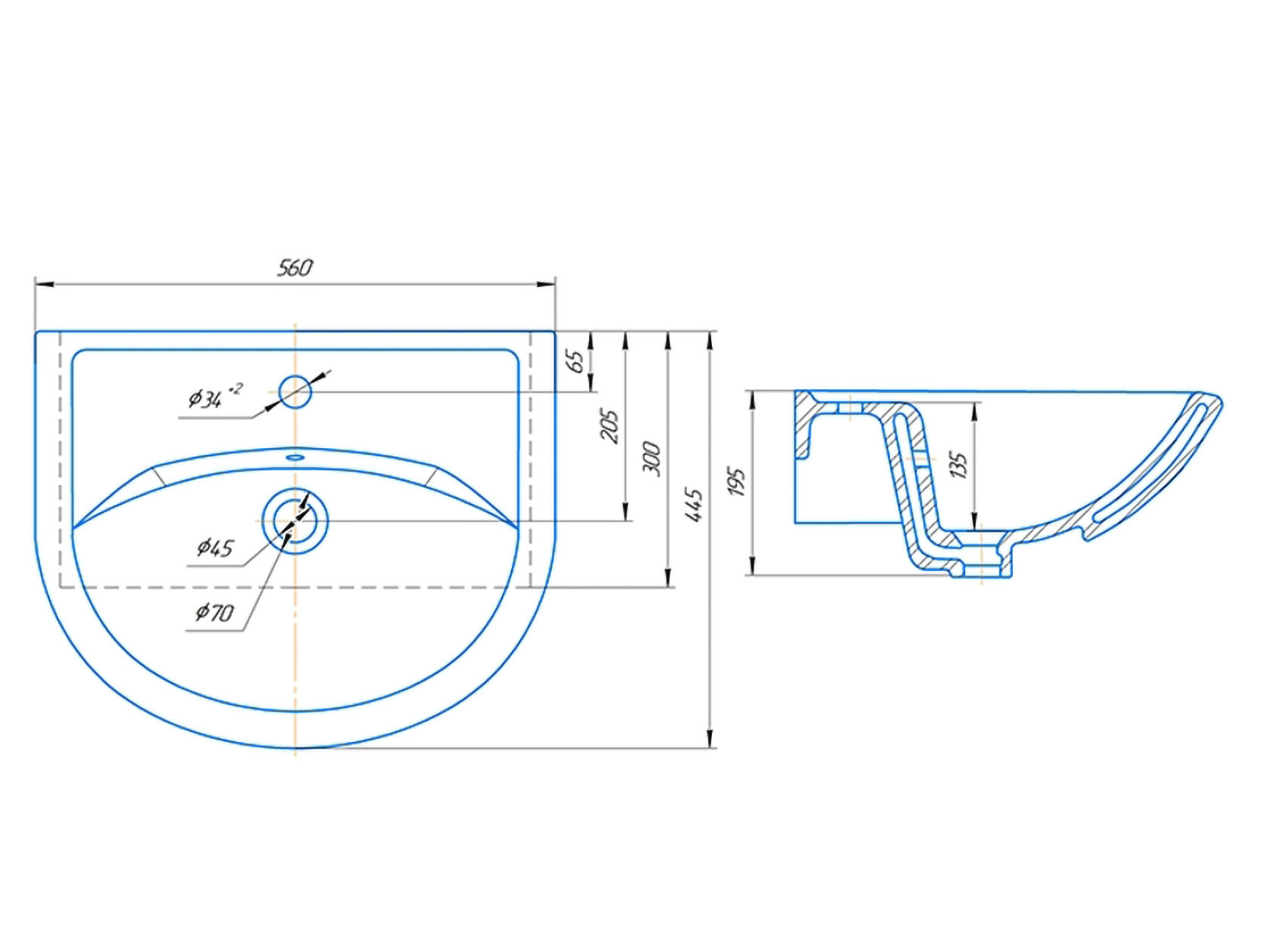 Обратите внимание, смеситель, сифон и донный клапан в комплект не входят.