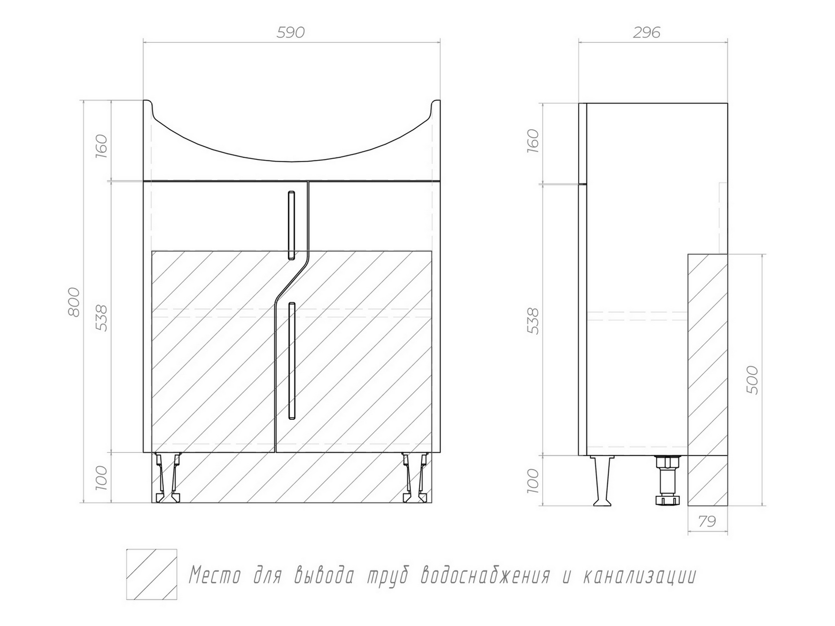 • для тумбы 60 см: 18 х 61,5 х 47 см.