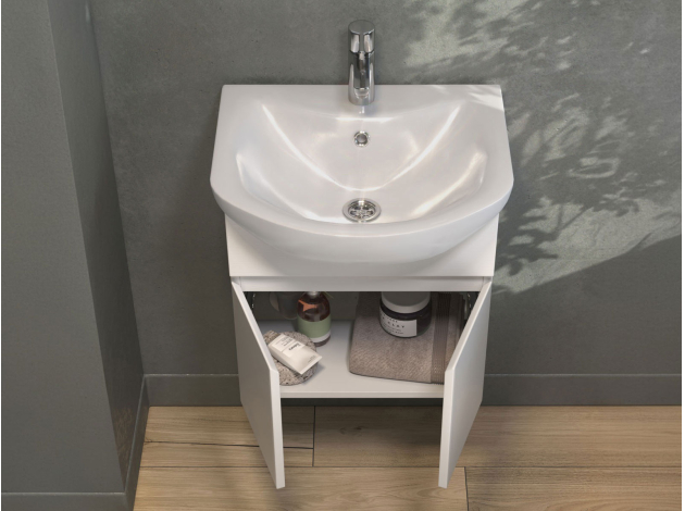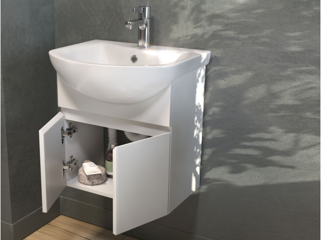 Навесная тумба под раковину Винг станет важным дополнением интерьера и поможет функционально обустроить ванную комнату. Внутренне пространство позволяет с удобством разместить в быстром доступе уходовые средства и косметику.