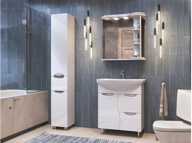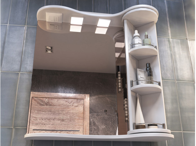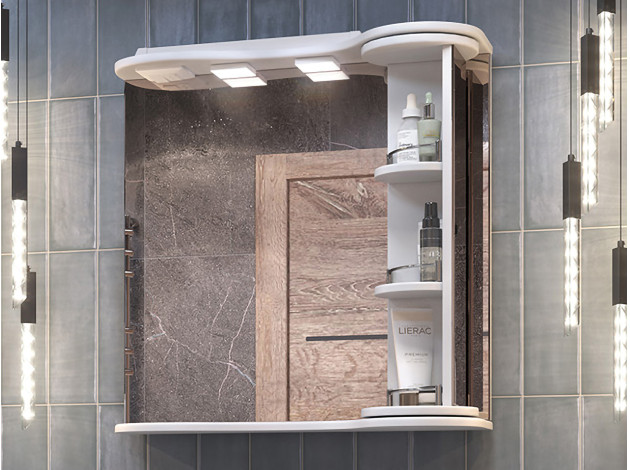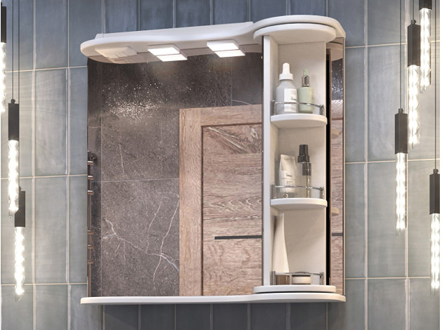 Зеркало с поворотной полкой Каллао обеспечит легкий доступ к предметам благодаря поворотному механизму колонны. На полках удобно хранить косметику и уходовые средства. Полотно с двумя светильниками устойчиво к коррозии, а встроенная евророзетка подходит для подключения электроприборов. Глянцевая поверхность отличается высокой влагостойкостью, поэтому долго сохраняет эстетичный вид.