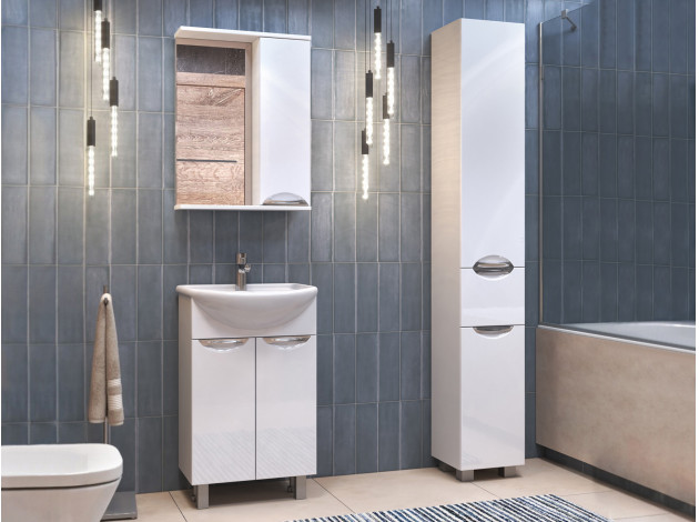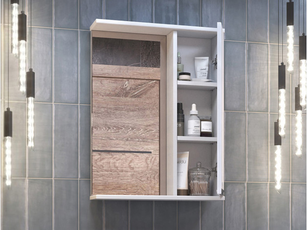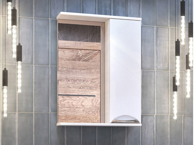 Зеркало с системой хранения Каллао Белый / Зеркальный 50 см Без подсветки Правая
